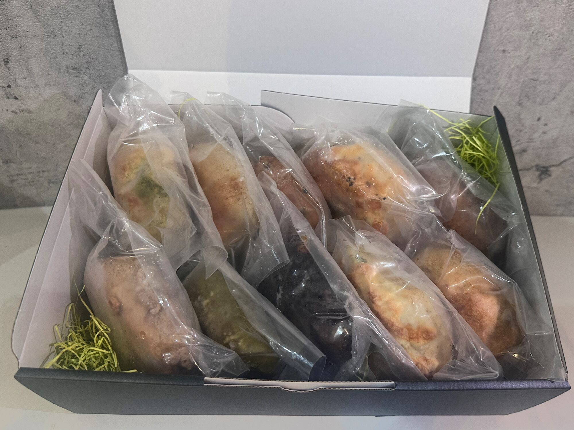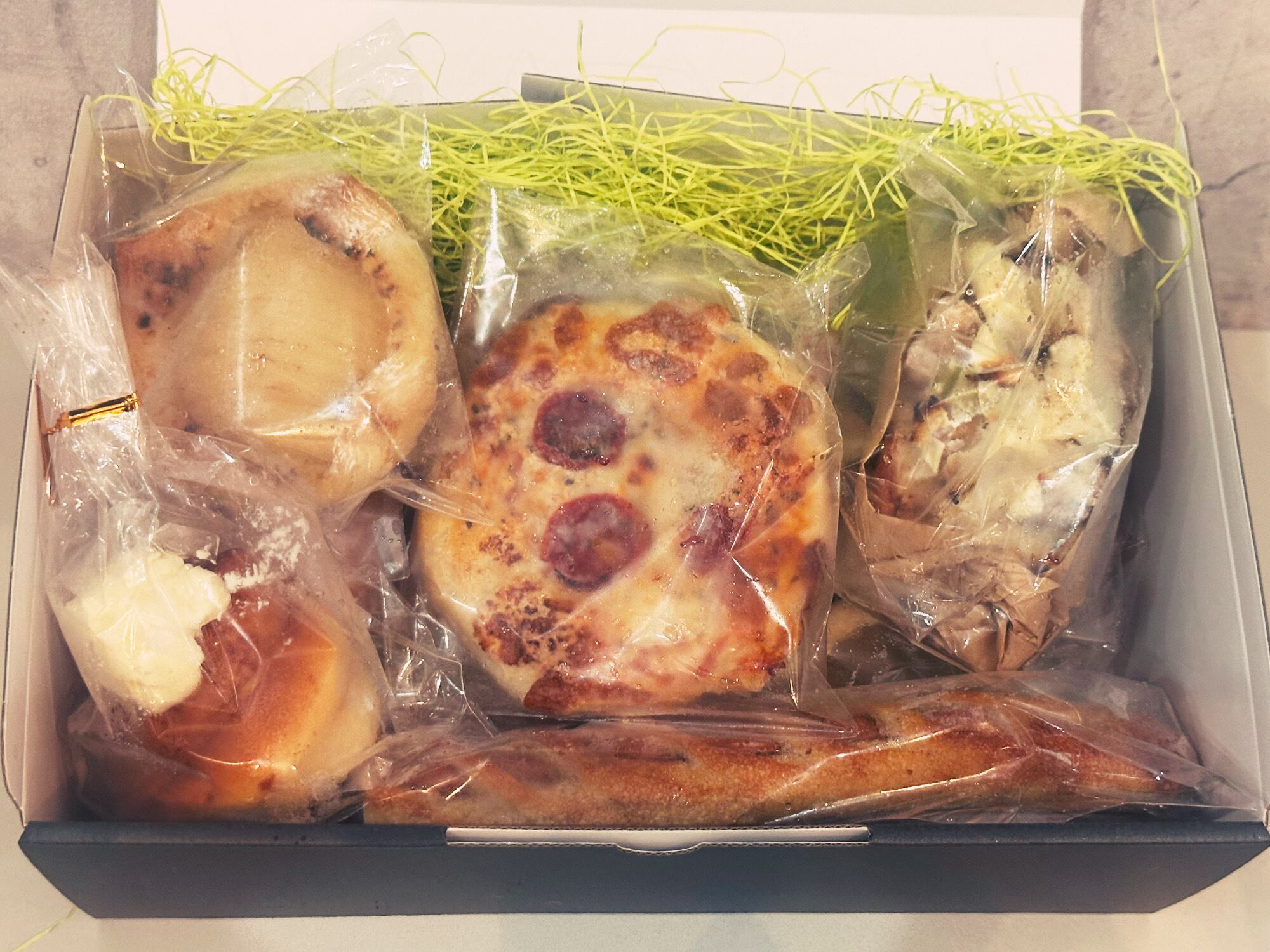 MIYABI BAGELが1セット、ロスパンセットが1セット、それぞれがちょうど1箱に入ります。